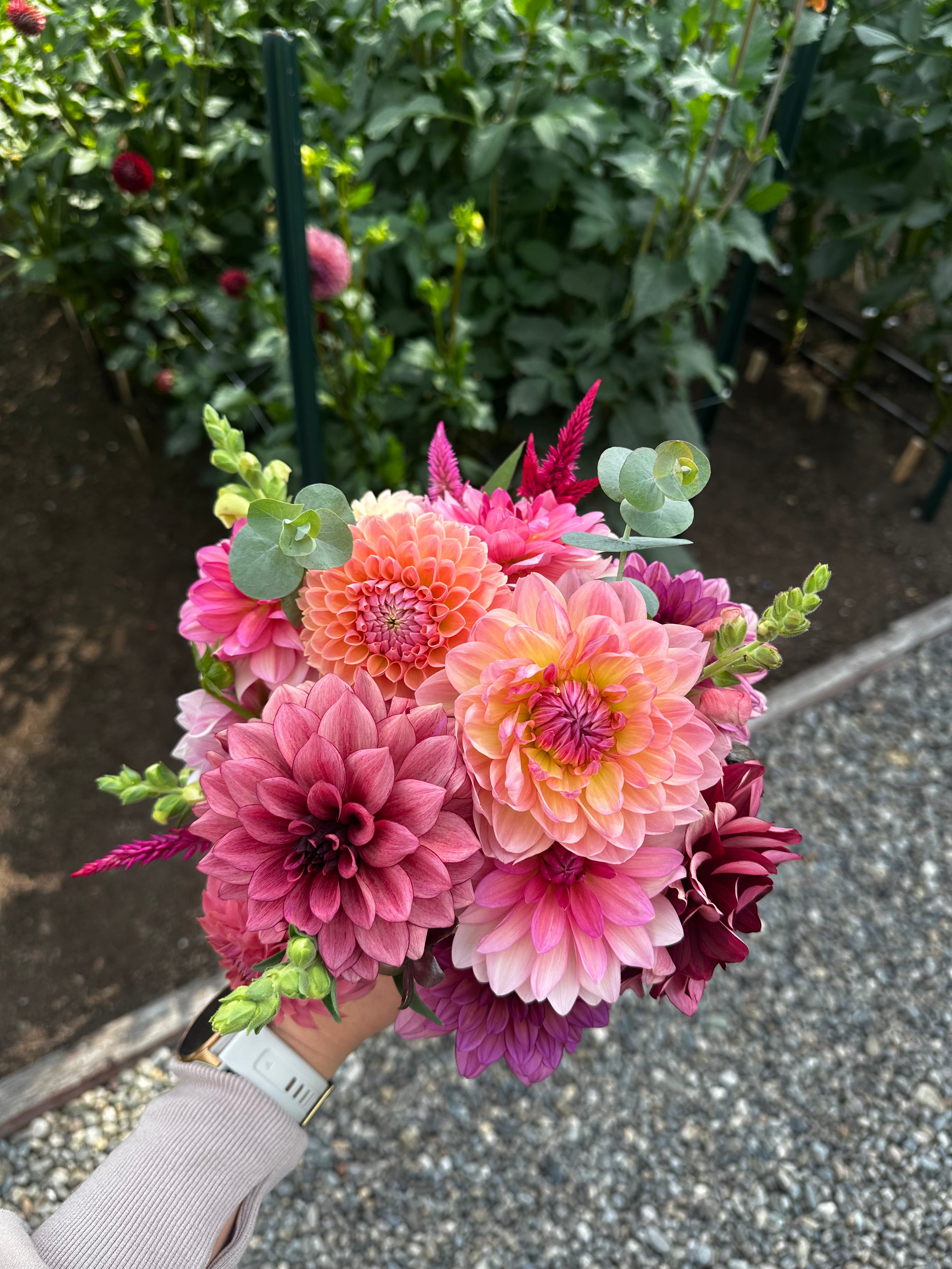 Check out our bouquets, made from the flowers and filler grown on the farm. Custom orders available.